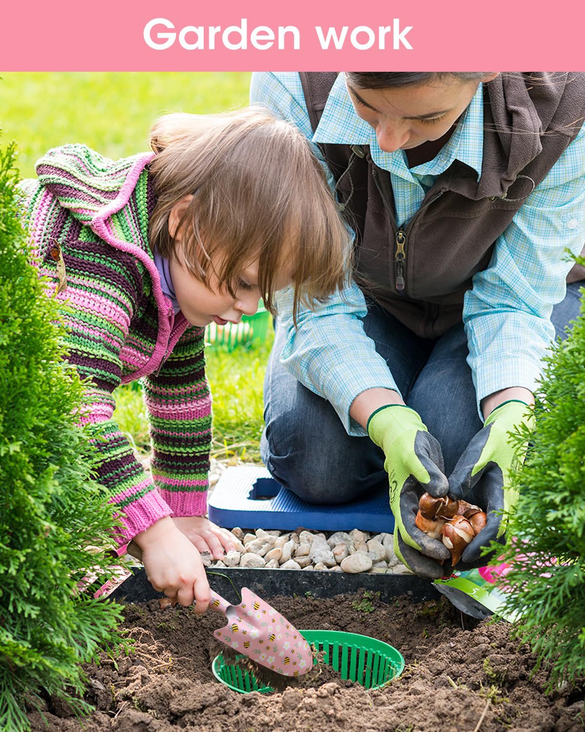 - Floral print design adds a cute, decorative touch to your gardening kit.